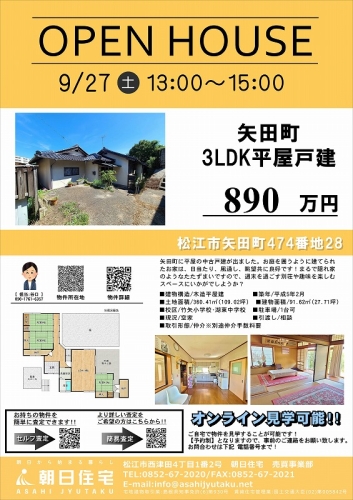 13時~15時までの2時間、矢田町の中古住宅にてオープンハウスを開催します( *´艸`)