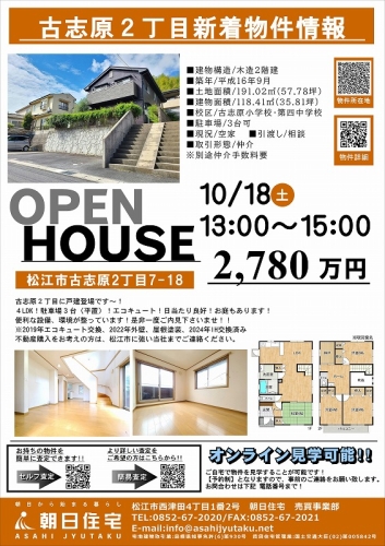 古志原2丁目の中古住宅にてオープンハウスを開催いたします(^_-)-☆